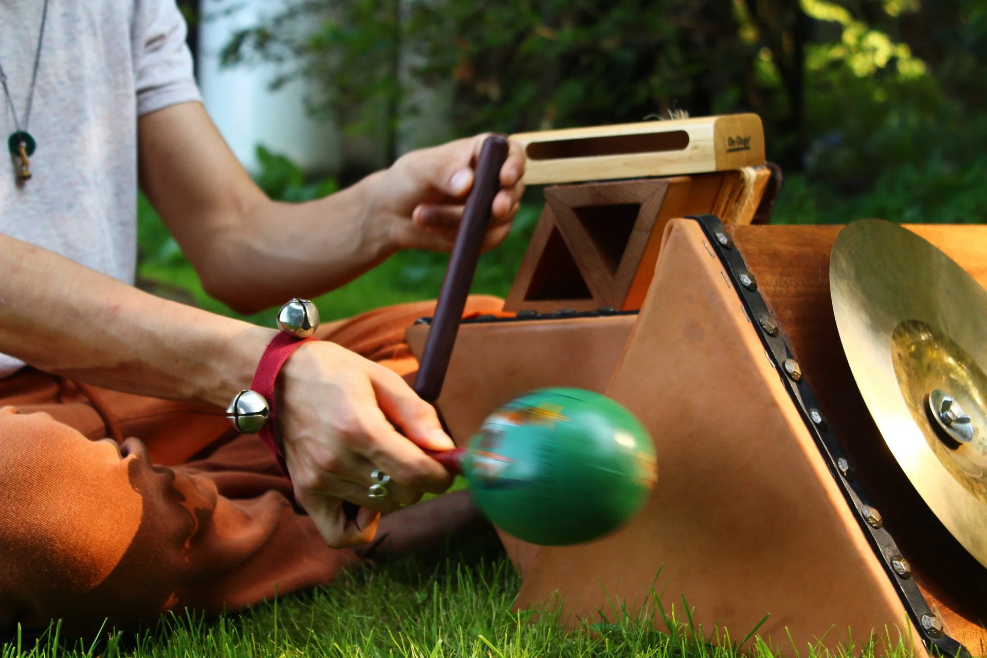 Julian Calv is the sole protégé of the late Stefan Lakatos—who Moondog himself described as “the leading [and only] exponent of the Moondog method of drumming.” As a dedicated custodian of this legacy, Julian performs on the trimba, a percussion instrument designed by Moondog specifically for his unique rhythmic compositions. Following Lakatos’s passing in 2023, Julian established the collective Trimbtych. The ensemble is committed to preserving and performing traditional interpretations of Moondog’s work exactly as the composer intended.